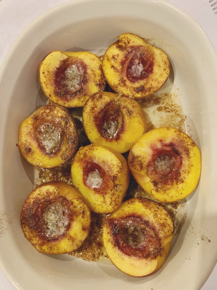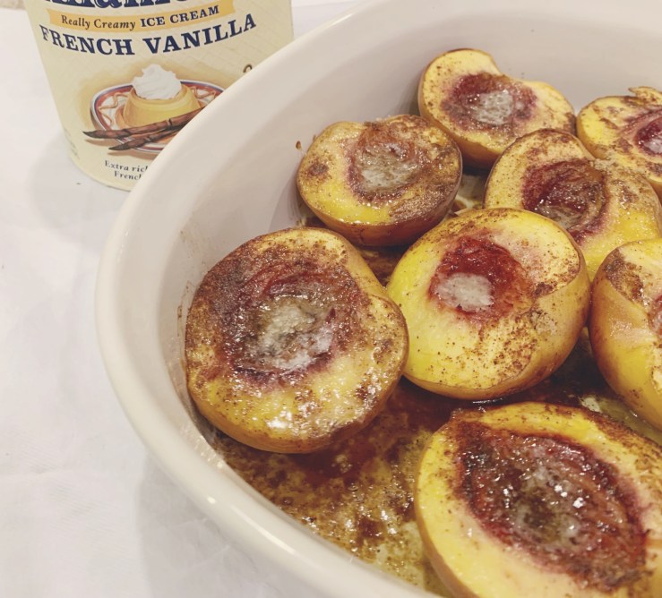 I wouldn’t mind getting more peaches on my next trip but I needed to do something with these ones that were now sitting on my counter. So I decided to make baked peaches!