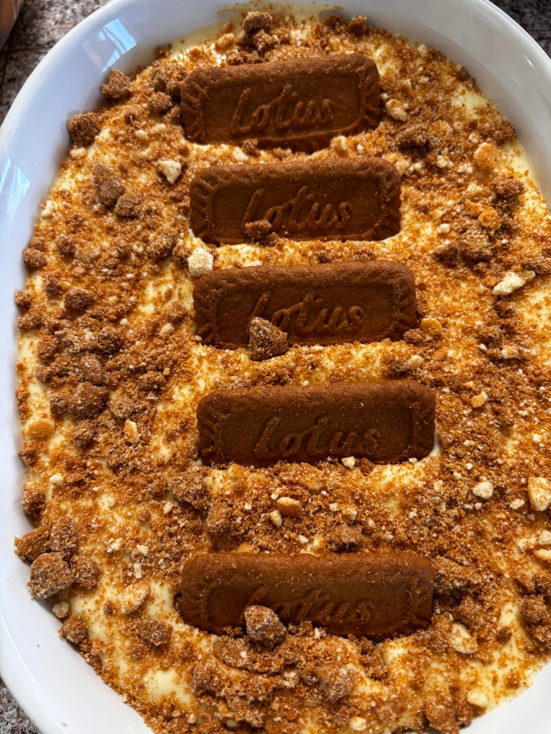 - Top off the pudding with crushed vanilla wafers and biscoff cookies.