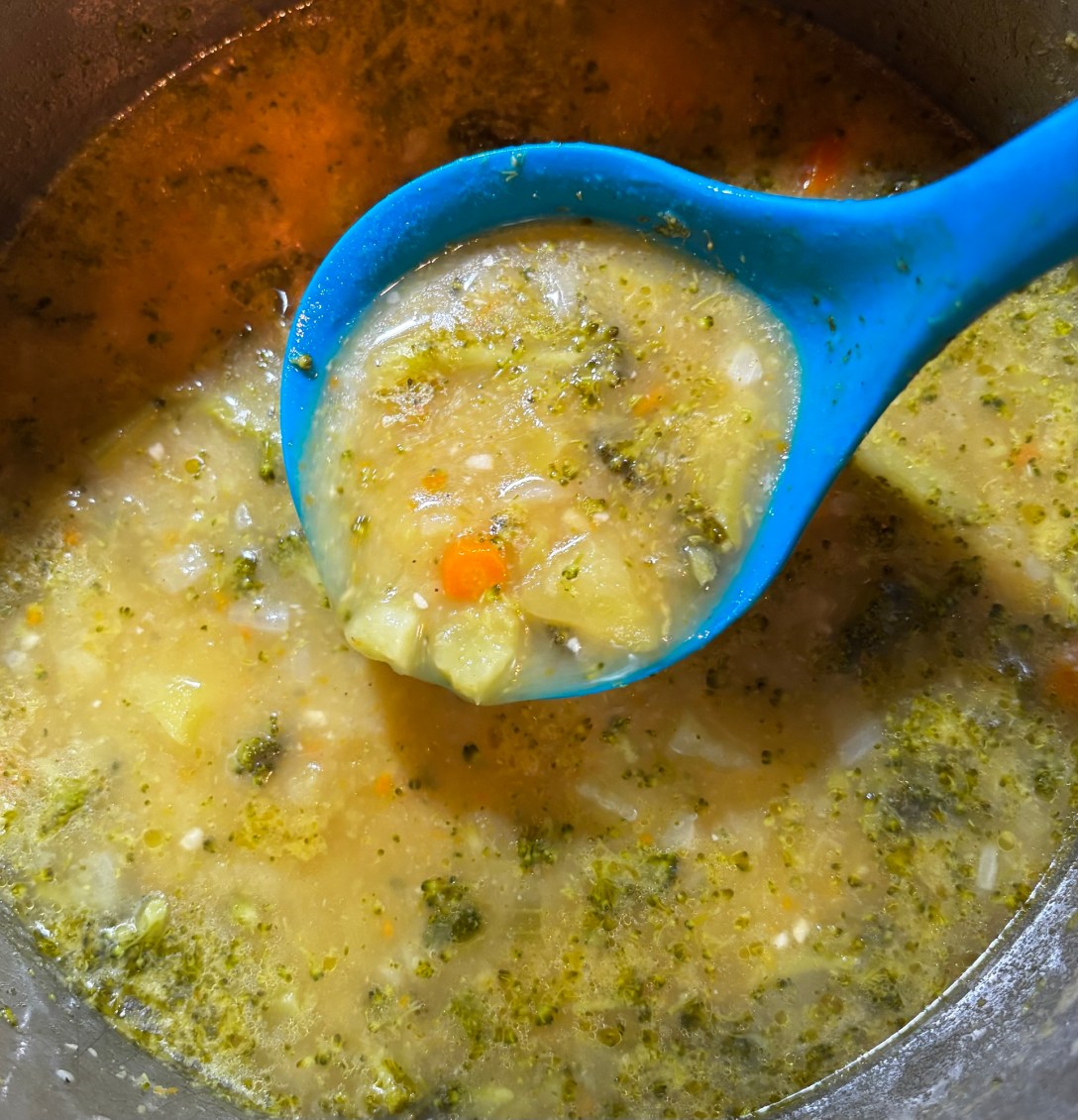 Add the potatoes, carrots, and broccoli. Stir gently, letting everything coat in the warmth of the pot.