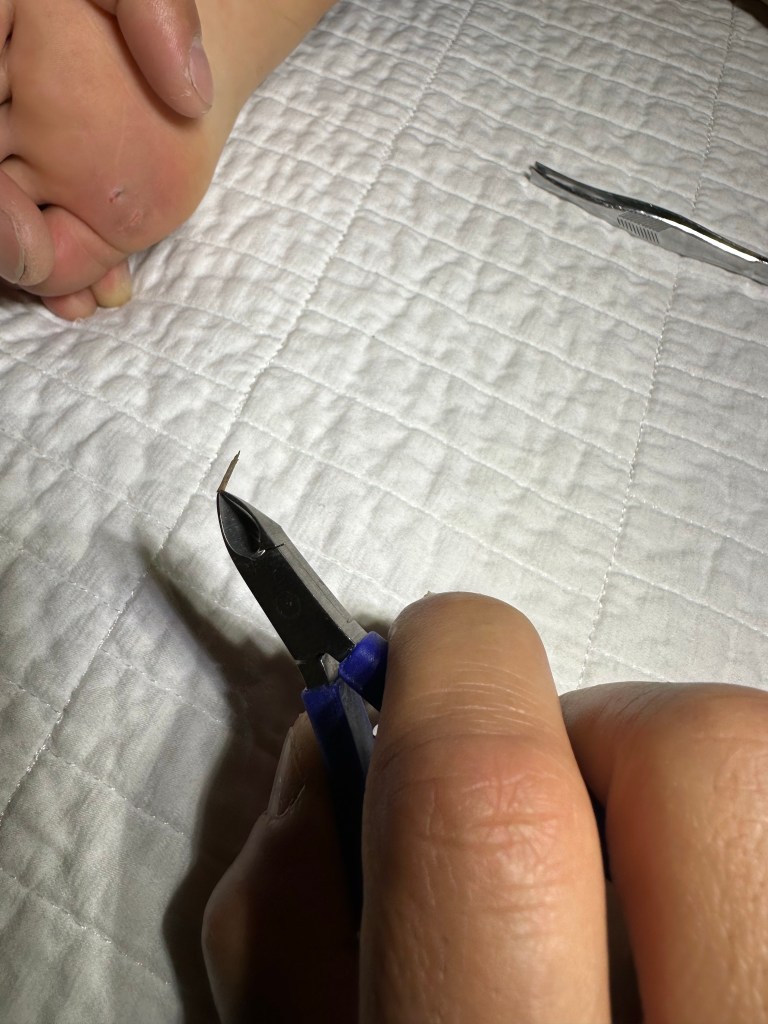 There’s 2 splinters that are deep in her foot. These won’t be easy to pull out with just tweezers, she’s going to need “surgery”. I call my husband and tell him what happened. Luckily he was already on his way home from work. He tells me to soak her foot in water. I take her to the bathtub.