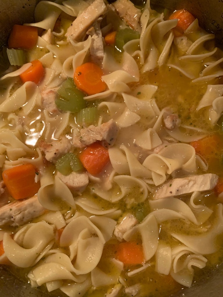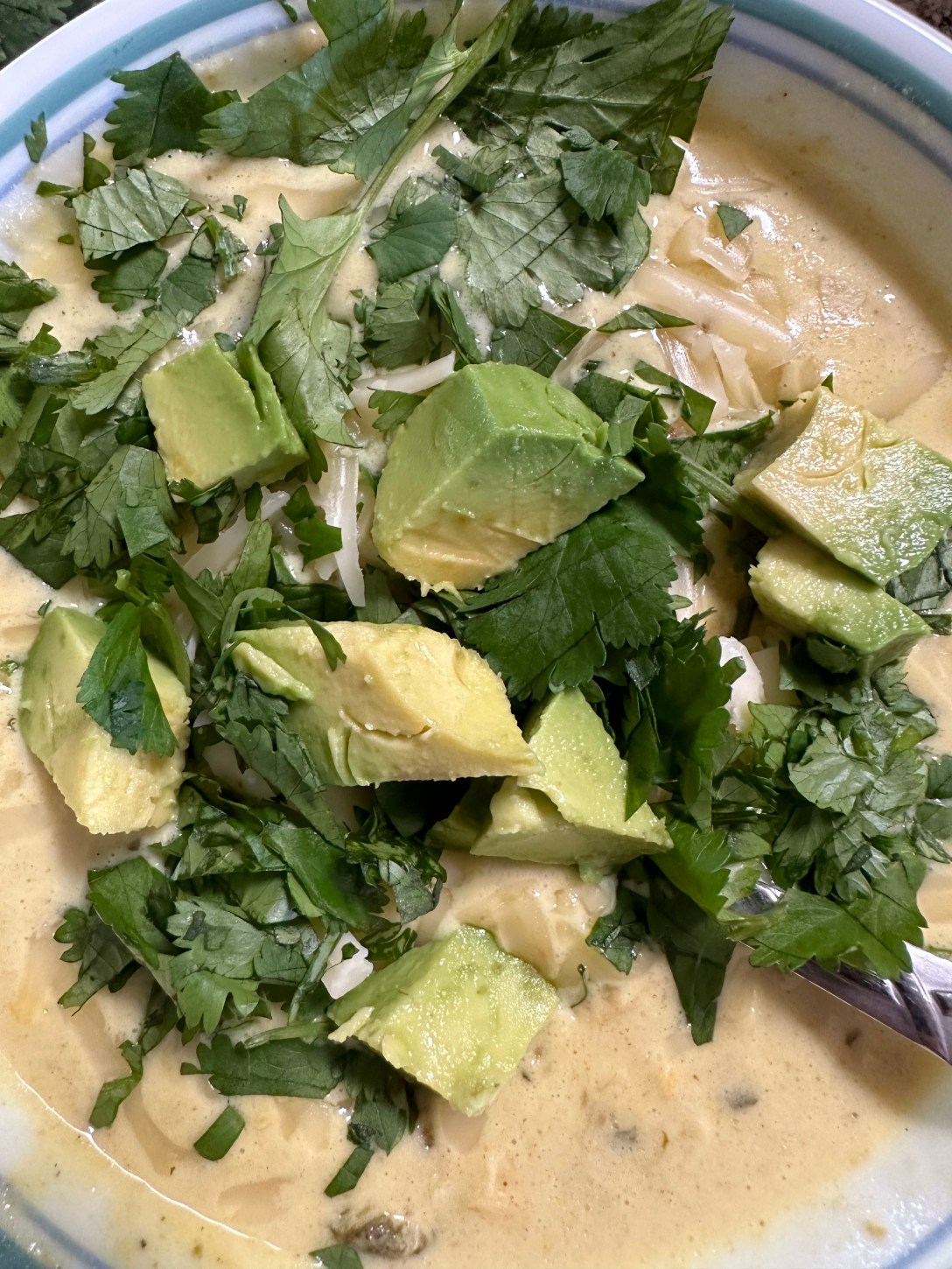 3. Squeeze out your garlic in a medium sized bowl and add the rest of the contents. Add your chicken broth and blend with a hand mixer.