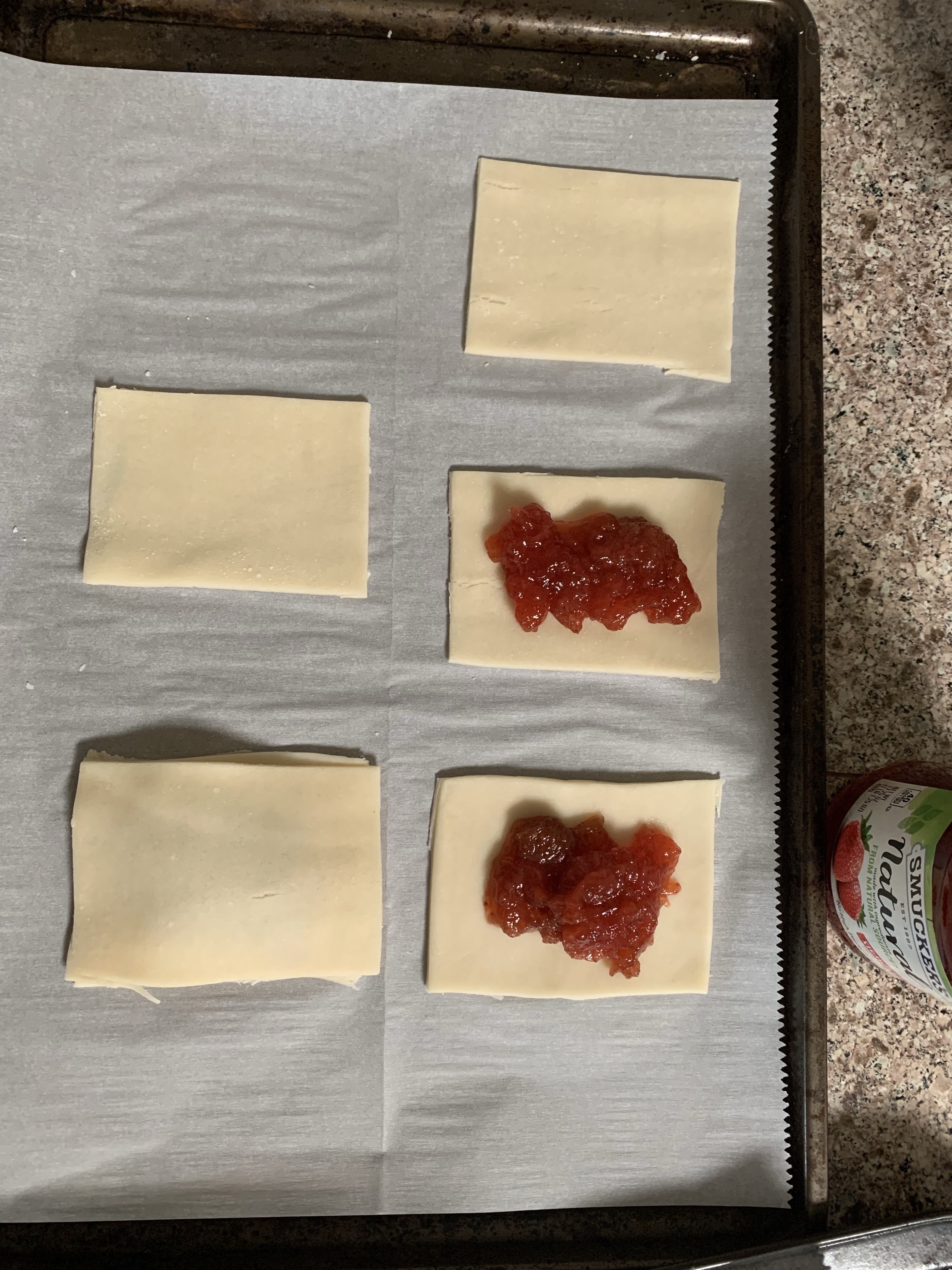 4. Once dough is done rising freeze one and prepare the other. Rub olive oil all over a 9 x 13 glass dish. Arrange your dough in the glass dish leaving some space in the corners to spread. Add your sauce, seasonings, and toppings.
