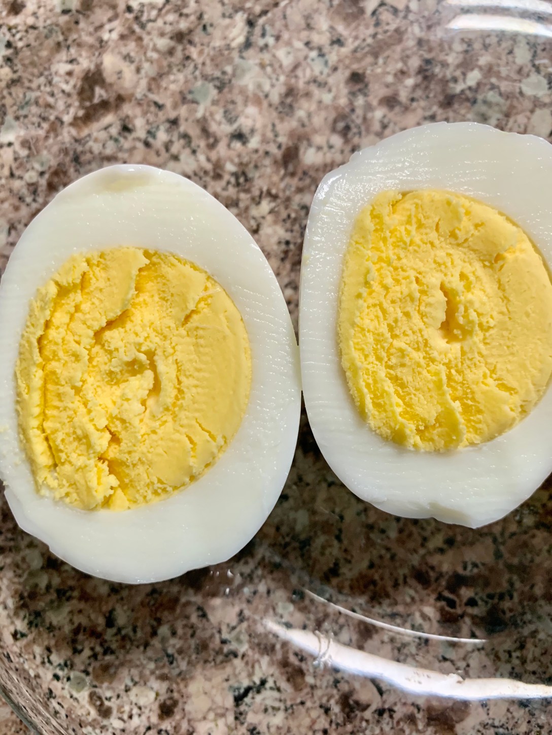 After removing from ice bath, cut in half, and your eggs should look like this.